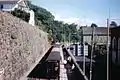 Northwards of the present Caernarfon station, the former standard gauge line ran through a tunnel, which is now used by a public road, to the site of the original Caernarvon railway station. The LNWR was under an obligation to build a station on this site (below Segontium Terrace), however the town corporation waived its claim to this station.[4] The original line continued on to a junction with the Chester and Holyhead Railway just south of the Britannia Bridge, terminating at the now-demolished Menai Bridge station.[5]