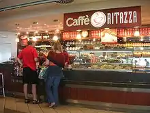 Caffè Ritazza is a chain of coffee shops owned by the British multinational company SSP Group. It provides a range of coffees, pastries, ciabattas, panini and alcoholic drinks at many sites internationally.