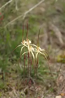 The primrose spider orchid is mostly found between the Mogumber Nature Reserve and Kendenup in the Avon Wheatbelt, Jarrah Forest and Swan Coastal Plain biogeographic regions where it grows in well-drained soil under wandoo and sheoak trees.[2][3][4][6]