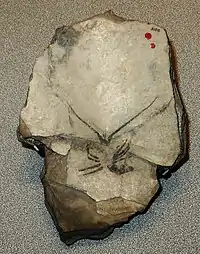 An indeterminate ammonite. Some of the specimens found are very fragmentary, making its identification complex.[2] |