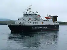 MV Coruisk is a 65 m (213 ft) "sheltered water vessel", operating on the Oban to Craignure route in summer, and relieving on the Clyde in winter.[18] Her design allows her to make the crossing in reverse when sea conditions allow.[18]