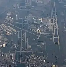 Following the end of the Second World War, the airport had been expanded to include additional hangars, four runways and other infrastructure.[8] The City of Calgary resumed management of McCall Field in 1946, repurposed the a hangar as a passenger terminal, and convinced the federal government to extend the airports 4,125 ft (1,257 m) east–west runway to 6,200 ft (1,900 m) in October 1949 at an estimated cost of $750,000 the construction required a five-foot excavation below grade to prevent frost heaving.[15] At the time of completion, McCall Field's east–west runway was the third-longest runway in Alberta behind the Calgary Airport's north–south runway and the runway at CFB Namao.[16][9]