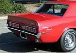 The Mustang GT/CS features included: Marchal or Lucas Fog Lights, twist-type DZUS hood pins, side scoops, pop-open gas cap, rear spoiler decklid with end caps, and taillight panel with 1965 Thunderbird taillights (non sequential). Side stripes with the "GT/CS" die-cut logo, along with a rear decklid stripe were included, and were available in white, black, red, and metallic medium blue only. It was available in all standard Mustang colors for 1968, all Ford engine and transmission combinations (except 427/C-6, which was dropped for all '68s).