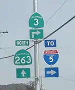 State Route 263 (SR 263) is a state highway in the U.S. state of California in Siskiyou County, running parallel to Interstate 5 to the west. Route 263 connects State Route 3 near the north city limits of Yreka to State Route 96 eight miles (13 km) north. Although SR 263 was once part of U.S. Route 99, it is not signed as part Business Loop 5.