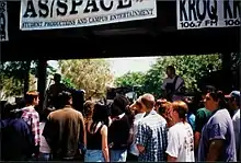 Classes started on September 24, 1956, in temporary buildings, with an enrollment of 1,500 students.[18] Delmar Oviatt, the former namesake of the current campus library, was the dean of the satellite campus until July 1, 1958, when the campus separated from Los Angeles State College and was renamed San Fernando Valley State College (popularly abbreviated to Valley State College, Valley State, or SFVSC) after the California Legislature passed Assembly Bill No. 971.[19][20] Ralph Prator was assigned as the first president of the university and enrollment reached 2,525 with a tuition of $29 per semester.[11][18] During that same year, the first graduation ceremony was held for around 100 students at the Hollywood Bowl before being moved to campus during subsequent years.[18] In 1959, the university became the first State College to have its own computer.[11] In 1964, the pioneering computer lab was moved into new quarters in the recently completed Sierra Hall building complex, and student enrollment reached nearly 12,000.[11] Other buildings were also swiftly constructed during the early 1960s to accommodate this rapidly growing student population.[18] Additionally, in November 1963 the university established its own radio station, which continues operation to this day as KCSN.[18]