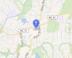The church was founded in 1939 as Bible Presbyterian Church at Central High School.[1] The first pastor was the Rev. Edgar Archer Dillard, and one of the founding elders was Billy Graham's father Frank, whose participation was in part a response to Billy's conversion. The first building was completed in 1941 on Fourth Street and held 750. Under the Rev. Ross Rhoads, who began his more than 20 years of service in 1973, Calvary increased membership from 400 to 2000 in three years, with the first building at a new location at Sardis and Randolph Roads. A 1500-seat sanctuary was dedicated in 1978. Groundbreaking for the current building took place in 1986.[2]