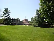 Calvin acquired the 166-acre (0.67 km2) property in the mid-1950s and began a process of turning a biologically diverse farm into a center for Christian higher education.[41] The master plan for the site was developed in 1957 by William Beye Fyfe, an adherent of the Prairie School of architecture.[42] Working with President Spoelhof, Fyfe came up with a set of design principles for the campus aimed to both symbolically represent and physically promote such ideals as the integration of faith and learning; integration of administration, faculty, and students; and the inter-relatedness of all the disciplines.[42]
