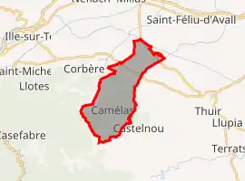 Map of Camélas and its surrounding communes