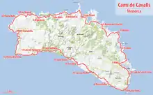 The Camí de Cavalls is an ancient path of 186 km (116 miles)[1] that encircles the island of Menorca, Spain. This long-distance walking route is the GR 223 of the Senderos de Gran Recorrido network in Spain and it is also used to reach some of the most inaccessible beaches of Menorca.