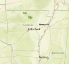 The Hell Creek Cave crayfish can be found in various stream habitats in Arkansas. Within these habitats it thrives on muddy stream bottoms or along cave stream walls.[4] These habitats have no visible light and a stable, low temperature. The aquatic system in this environment is relatively stable, except for occasional flooding when it rains.[5] Its preferred habitat conditions are mostly identical among the various locations it is located.