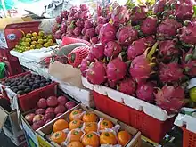 - Soursop (ផ្លែទៀបបារាំង, phlê tiĕp barăng – 'foreign custard apple fruit')