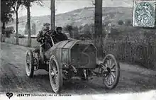 Camille Jenatzy (1868, Schaerbeek – 8 December 1913, Habay la Neuve) was a Belgian race car driver. He is known for breaking the land speed record three times and being the first man to break the 100 km/h barrier. He was nicknamed Le Diable Rouge ("The Red Devil") after the colour of his beard .[1]