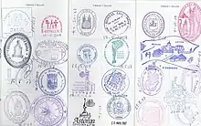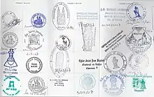 Most pilgrims purchase and carry a document called the credencial,[35] which gives access to overnight accommodation along the route. Also known as the "pilgrim's passport", the credencial is stamped with the official St. James stamp of each town or refugio at which the pilgrim has stayed. It provides pilgrims with a record of where they ate or slept and serves as proof to the Pilgrim's Office in Santiago that the journey was accomplished according to an official route and thus that the pilgrim qualifies to receive a compostela (certificate of completion of the pilgrimage).