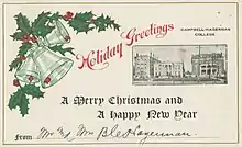 Barton Campbell Hagerman (1853-1922) had been president of Hamilton College in Lexington, Kentucky from 1898 to 1902. He was supported in this endeavor by his wife, Mary Anna "Mamie" Campbell Hagerman (1862-1912), the granddaughter of Alexander Campbell, founder of the Disciples of Christ or Christian Church, and his second wife Selina Huntington Bakewell Campbell. He worked for a year to build two new buildings on either side of a mansion he planned to turn into a classroom building, and on May 2, 1903, they held an opening ceremony for the new college for women. All the local college presidents and several ministers attended the ceremony and spoke of their support. Hagerman announced that the new college was to be named Campbell-Hagerman College in honor of his wife who would be sharing "in the cares and duties of its conduct."[1]