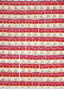 Campbell's Soup Cans[1] (sometimes referred to as 32 Campbell's Soup Cans)[2] is a work of art produced between November 1961 and March or April 1962[3] by American artist Andy Warhol. It consists of thirty-two canvases, each measuring 20 inches (51 cm) in height × 16 inches (41 cm) in width and each consisting of a painting of a Campbell's Soup can—one of each of the canned soup varieties the company offered at the time.[1] The non-painterly works were produced by a screen printing process and depict imagery deriving from popular culture and belong to the pop art movement.