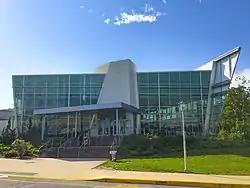 The Staller Center for the Arts is the main arts building at Stony Brook. It opened in 1978 and was renamed in 1988 for the Staller family after a $1.8 million donation. It was the largest-ever private donation to the university at the time.[26] The Staller Center is home to the Stony Brook Film Festival, an annual event which provides a program of independent films shown in the building's Main Stage. The festival draws crowds of over 14,000 and takes place over ten days.[27] The Staller Center contains three black box theaters, a recital hall, and a professional 1,000-seat performance stage (the Main Stage) with a 40-foot movie screen. The screen is the largest on Long Island.[28] Roughly 500 events take place in the Staller Center during each season.[28] The Staller Center has hosted speakers and entertainers ranging from Bob Woodward, Bob Saget, Bill Cosby, David Sedaris, Stephanie Kelton, Spike Lee and Yo-Yo Ma.[29][30][31][32][33] The Staller Center is also home to the Paul W. Zuccaire Gallery, a 5,000-square foot space that showcases professional and student exhibitions.[34]