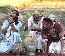 Costumers in the Wardrobe department extensively research authentic first century garb in the Middle East. It was unlawful to have a graven image for the Jewish people of that time, and so there are little to no pictorial resources which can be drawn upon in the way of statues and engravings. Much of the wardrobe is therefore based upon text descriptions by historians, and the customs and culture of present-day Orthodox Jews. Much is also drawn from studying the wardrobe and culture of the Bedouins, who have changed relatively little over the centuries. Many performers have multiple roles, and therefore multiple costumers, demanding a vast archive of costume pieces.