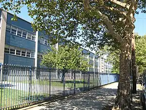 In conjunction with this development, the federal and city governments each awarded hundreds of thousands of money toward improving parks and beaches in Canarsie.[77] The New York Times predicted that Canarsie could become "the next Jones Beach", a seaside resort of kinds.[15] It was expected that there would be 5,000 more school-aged children living in Canarsie, so public and parochial schools were expanded as well.[77] From 1950 to 1955, Canarsie's population grew from 3,500 to 4,500.[15] By 1963, a new 69th Precinct building for the New York City Police Department had to be constructed to accommodate the growing population.[72] Many young families moved to Canarsie, and Canarsie High School was built to handle the newcomers.[72][10] Canarsie High School opened in 1964.[81]
