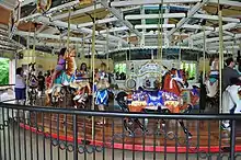 Murphy's Carousel was created in 1912 by the Stein and Goldstein Artistic Carousell Company of Brooklyn and installed in Golden City Park. A writer for The New York Times later noted that "the horses were carved in Coney Island style, which eschewed the look of docile ponies and prancing fillies and produced much more muscular, ferocious creatures with bared teeth and heads often lifted in motion."[46]