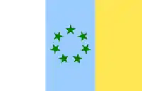 The CIIM's radio programmes called for the Canarian people to "go back to their roots" and tried to popularize the Berber language.[2] But its efforts were mostly unsuccessful because Canarios were averse to the violent methods of the movement and at its height the CIIM had no more than 100 members.[3] The flag of the movement became very popular, however, and was adopted without the stars for the pre-autonomous government.[4]
