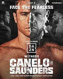 Canelo Álvarez vs. Billy Joe Saunders, billed as Face the Fearless, was a super middleweight professional boxing match contested between WBA (Super), WBC, and The Ring champion, Canelo Álvarez, and WBO champion Billy Joe Saunders. The bout took place on May 8, 2021, at AT&T Stadium in Arlington, Texas. Álvarez defeated Saunders via eighth-round corner retirement.[1]