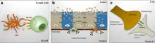 Canine distemper virus affects nearly all body systems.[24] Puppies from 3–6 months old are particularly susceptible.[25] CDV spreads through aerosol droplets and through contact with infected bodily fluids, including nasal and ocular secretions, feces, and urine, 6 to 22 days after exposure. It can also be spread by food and water contaminated with these fluids.[26][27] The time between infection and disease is 14 to 18 days, although a fever can appear from 3 to 6 days after infection.[28]