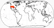 The first fossil record was found in Cita Canyon, Texas. Subsequent discoveries of specimens were found in four other Texas sites, Tonuco Mountain, New Mexico, western Washington[8] Santa Fe River, Florida,[9] Black Ranch in northern California, sites in Nebraska, Idaho, Utah, and Oklahoma.