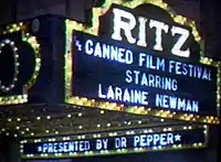 The Canned Film Festival is a comedy-based motion picture television series that was nationally syndicated during the late night hours in the United States for a single season in the summer of 1986. With only a one-letter difference in the spelling, the name is an intentional play on the name for the Cannes Film Festival, the annual world-renowned film-screening celebration in Cannes, France. Not to be confused with the latter, the Canned Film Festival featured B movies as the centerpiece for each television episode, and was composed of short vignettes interwoven throughout the films.[1] Boasting the tagline "late night with the best of the worst", the series was promoted and sponsored by the Dr. Pepper Company, whose then-tagline "out-of-the-ordinary" echoed the show's collection of odd and strange movies.[2][3] The series was created by Young & Rubicam, developed for television by Chelsea Communications,[4] and distributed by LBS Communications.[5]