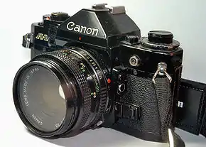 The Canon A-1 is an advanced-level single-lens reflex (SLR) 35 mm film camera for use with interchangeable lenses. It was manufactured by Canon Camera K. K. (today Canon Incorporated) in Japan from April 1978 to 1985. It employs a horizontal cloth-curtain focal-plane shutter with a speed range of 30 to 1/1000 second plus bulb and flash synchronization speed of 1/60 second. It has dimensions of 92 millimetres (3.6 in) height, 141 millimetres (5.6 in) width, 48 millimetres (1.9 in) depth and 620 grams (22 oz) weight. Unlike most SLRs of the time, it was available in only one color; all black. The introductory US list price for the body plus Canon FD 50 mm f/1.4 SSC lens was $625; the camera body was generally sold with a 30–40% discount (roughly $375 to $435).