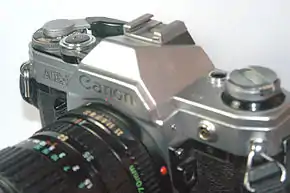 The AE-1 has a Canon FD breech-lock lens mount and accepts any FD or New FD (FDn) lens. It is not compatible with Canon's later Canon EF lens mount, though adapters made by independent manufacturers can be found. The camera will also accept Canon's earlier FL-mount lenses through the use of stop-down metering.[2] Original FD lenses, introduced in 1971, do not rotate in the mounting process; instead, a locking ring at the base is turned to attach the lens. This was often criticized as being slower than the bayonet mounts of competing cameras.[3]: 201 The counter argument, though, was that as the lens/body mating surfaces did not rotate, there was no wear that could affect the critical distance from lens to film plane. In 1979, Canon introduced the New FD series of lenses that rotate the whole outer lens barrel to lock. The inner lens barrel remains stationary, and thus the signal levers and pins still do not rotate. During the late 1970s, there were over 50 Canon FD lenses available for purchase. They ranged from a Fisheye FD 15 mm f/2.8 SSC to a FD 800 mm f/5.6 SSC, plus special purpose lenses such as a 7.5mm circular fisheye and a 35 mm tilt and shift lens.
