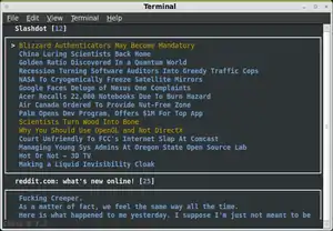 Canto is a terminal based aggregator for online news. It supports all major news formats (RSS/RDF and Atom), as well as importing from and exporting to OPML. The news content is downloadable and as such Canto also has limited podcasting support. Canto intends to be extremely flexible and extensible, allowing the full use of the Python programming language in its configuration.[3]
