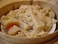 Cantonese or Yue cuisine is the cuisine of Guangdong province of China, particularly the provincial capital Guangzhou, and the surrounding regions in the Pearl River Delta including Hong Kong and Macau.[1] Strictly speaking, Cantonese cuisine is the cuisine of Guangzhou or of Cantonese speakers, but it often includes the cooking styles of all the speakers of Yue Chinese languages in Guangdong. Scholars categorize Guangdong cuisine into three major groups based on the region's dialect: Cantonese, Hakka and Chaozhou cuisines.[2] On the other hand, the Teochew cuisine and Hakka cuisine of Guangdong are considered their own styles, as is neighboring Guangxi's cuisine despite eastern Guangxi being considered culturally Cantonese due to the presence of ethnic Zhuang influences in the rest of the province. Cantonese cuisine is one of the Eight Culinary Traditions of Chinese cuisine. Its prominence outside China is due to the large number of Cantonese emigrants. Chefs trained in Cantonese cuisine are highly sought after throughout China.[3] Until the late 20th century, most Chinese restaurants in the West served largely Cantonese dishes.