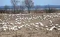 The Cap Tourmente National Wildlife Area is a National Wildlife Area located on the north shore of the Saint Lawrence River in the National Provincial Capital Region of Quebec, established on 28 April 1978. It is one of the critical habitats for the greater snow goose during migration. Flocks of tens of thousands of these birds stop over to feed on the bullrushes in the spring and fall. The tidal marsh was recognized as a wetland of international significance per the Ramsar Convention in 1981, the first North American site to receive that distinction.[2]