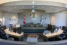The Cape Breton Regional Municipality is governed by Cape Breton Regional Council, which is composed of a mayor elected at-large and 12 councillors each elected to represent a separate district. Regional Council is responsible for all facets of the municipal government, including police, fire, library, transit, and water. The municipality oversaw an operating budget of $146 million and a combined capital and water capital budget of $32.375 million in the 2016/17 fiscal year.[16] The current mayor is Amanda McDougall.[1] Council and its committees meet at least once a month.