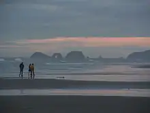 Cape Lookout is a sharp rocky promontory along the Pacific Ocean coast of northwestern Oregon in the United States. It is located in southwestern Tillamook County, approximately 10 miles (16 km) southwest of Tillamook, just south of Netarts Bay. The promontory extends 1.5 miles (2.4 km) perpendicular to the coast, and is approximately 0.5 miles (0.80 km) wide at its base, tapering as it extends outward from the coast. Cape Lookout State Park is located on the north side of the promontory, which is part of the Siuslaw National Forest. Cape Lookout Road travels past the base of the cape. Cape Lookout is a member of Tillamook's Three Capes Scenic Drive.[1]