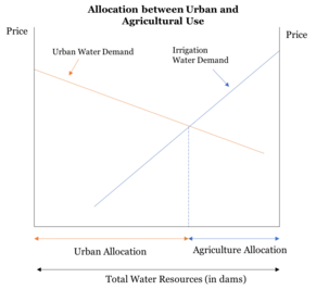 Water restrictions were imposed on both agricultural and urban use of municipal water. On average, the agriculture sector in the Western Cape has had to cut its water use by 60 percent since 2017. Water restrictions varied from 50 percent in the Breede Valley, 60 percent in the Berg River and Riviersonderend region and 87 percent in the Lower Olifants River Valley.[16] At Level 6B water restrictions, urban areas were expected to cut their water consumption by 45 percent. Anton Rabe, CEO of Hortgro, which represents deciduous fruit growers in Cape Town, argued that the cut of 60 percent to agriculture, compared with 45 percent to the city, was unfair.[109] However, there were also sensational news and vlogs which blamed the water crisis on water inefficient agricultural and livestock farming methods.[56] Optimal allocation of water between agricultural and urban use is particularly complicated due to the presence of multiple externalities, with irrigated water being crucial for food security and urban use for public health, as well as the seasonal changes in demand.