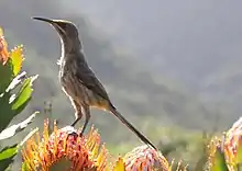 The Cape sugarbird (Promerops cafer)[2] is one of the eight bird species endemic to the Fynbos biome of the Western Cape and Eastern Cape provinces of South Africa.[3]