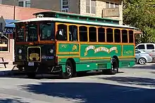 Capital Metro's Dillo service was a circulator service in downtown Austin. In May 2000, the Dillo service went through a major restructuring. It was shut down in 2009 after over 30 years of operation due to low ridership.[26] The service used forest-green trolley buses with an armadillo painted on the side. It was free until shortly before to its closure when Capital Metro began charging a 50¢ fare.[27]