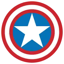 Marvel Comics has held several trademark registrations for the name "Captain America" as well as the distinctive logos used on the comic book series and in the associated merchandising. An application was filed on August 10, 1967, for use in comic books and magazines and a registration was granted by the United States Patent and Trademark Office on August 13, 1968.[65] Marvel's parent company, Disney, received a design patent on Captain America's shield in 2018.[66][67]