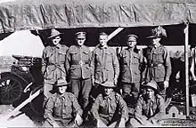 During the morning of 29 September retreating columns of German and Ottoman soldiers were seen by aerial reconnaissance in several groups with about 150 horse transports and 300 camels about 20 miles (32 km) south of Damascus. About 100 more infantry and pack camels were seen on the outskirts of Damascus.[79] Also during the morning a reconnaissance by the 11th Light Armoured Motor Battery (LAMB) had been attacked by a "force of all arms" estimated at 300 strong with machine guns and at least two guns, holding a rearguard position 20 miles from Quneitra across the road to Damascus four miles (6.4 km) south of Sa'sa.[63][80]