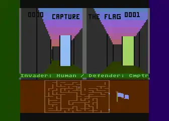 Capture the Flag is a 3D first-person perspective, two player, video game, released for the Atari 8-bit family and VIC-20 by Sirius Software in 1983. It was written by Paul Allen Edelstein as the follow-up to his 1982 game, Wayout, which has similar maze-based gameplay for one player. Along with its predecessor, Capture the Flag was among the first 3D maze games to offer the player full 360 degree movement,[2] and one of the earliest multiplayer games from a first-person perspective within a 3D rendered environment.