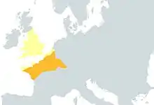 Three years later, in 296, the reconquest of Britain began. With Maximian holding the Rhine frontier, Constantius divided his fleet into several divisions. He led one division himself from Bononia; another, sailing from Le Havre, was commanded by Asclepiodotus, prefect of the Praetorian Guard.[10] They set sail in poor weather, but fog allowed Asclepiodotus's ships to pass Allectus's fleet, stationed at the Isle of Wight, unseen. They landed in the vicinity of Southampton and burned their ships. The rebels were forced to retreat from the coast, but in doing so, fell into the hands of another division and were routed. Allectus himself was killed in the battle, having removed all insignia in the hope that his body would not be identified.[11] Archaeology suggests that Calleva Atrebatum (Silchester) was the site of his defeat.[12] A group of Roman troops, who had been separated from the main body by the fog during the channel crossing, caught up with the remnants of Allectus's men, mostly Franks, at Londinium (London), and massacred them.[13] Constantius himself, it seems, did not reach Britain until it was all over, and the panegyrist claims he was welcomed by the Britons as a liberator.[14] At some point following the island's recovery by the Empire, the Diocletian Reforms were introduced: Britain as a whole became the Diocese of the Britains under the administration of the Prefecture of the Gauls based in Augusta Treverorum (Trier) and was divided from two provinces into four or five.