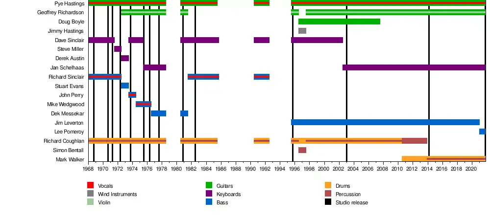 | Past members | Richard Coughlan Richard Sinclair Dave Sinclair Steve Miller Derek Austin Stuart Evans John G. Perry Mike Wedgwood Dek Messecar Doug Boyle Simon Bentall Jimmy Hastings |