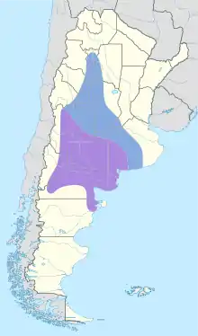 It is endemic to Argentina where its natural habitats are subtropical or tropical dry shrubland and temperate grassland.