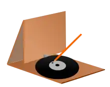 CardTalk is an inexpensive cardboard phonograph for playing recordings, mainly voice, made on vinyl records. The name was used by Global Recordings Network, a Christian missionary movement which used the device from the 1960s to play religious talks in remote parts of the world that did not have electricity. It consists of a flat piece of cardboard creased and folded into a triangle. The base has a nub to hold the record in place. The upper "arm" forms the "pointy" part of the triangle and has a needle which is placed upon the record. The record is spun using a small pointed object like a pencil. The cardboard picks up the impressions on the record and vibrates loud enough to be heard causing the "Card" to "Talk". Several cardboard phonograph playing devices were patented around the same period and these include Jauquet (1953) for a "Pocket Speaking Device", J.S. Wiener's "Sound Emitting Device" (1967) and the "Record Player" of Max Meier-Maletz (1972).[2][3][4]