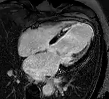Cardiac magnetic resonance imaging (cardiac MRI), also known as cardiovascular MRI, is a magnetic resonance imaging (MRI) technology used for non-invasive assessment of the function and structure of the cardiovascular system.[2] Conditions in which it is performed include congenital heart disease, cardiomyopathies and valvular heart disease, diseases of the aorta such as dissection, aneurysm and coarctation, coronary heart disease and it can be used to look at pulmonary veins.[3]