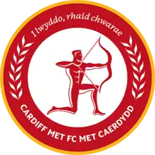 Cardiff Metropolitan University Football Club (Welsh: Clwb Pêl-droed Prifysgol Met Caerdydd), commonly known as Cardiff Met F.C., are a Welsh football club, of the Athletic Union of Cardiff Metropolitan University, based in Cyncoed, Cardiff that plays in the Cymru Premier. The club badge features the bowman with the words 'I lwyddo, rhaid chwarae' which is translated as 'To succeed, [one] must play'.