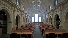 The University College of South Wales and Monmouthshire opened on 24 October 1883 with courses in Biology, Chemistry, English, French, German, Greek, History, Latin, Mathematics and Astronomy, Music, Welsh, Logic and Philosophy, and Physics. It was incorporated by Royal Charter the following year, this being the first in Wales to allow the enrolment of women, and specifically forbidding religious tests for entry.[15] John Viriamu Jones was appointed as the University's first principal at the age of 27. As Cardiff was not an independent university and could not award its own degrees, it prepared its students for examinations of the University of London or for further study at Oxford or Cambridge.[16]