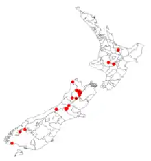 In New Zealand it is found on the North Island on the Waimarino Plain, and the Moawhango and in the South Island from Nelson and Marlborough south to the lakes of Te Anau, Manapouri, Hauroko and east to Lumsden. Its preferred habitat is bogs, seepages, and the margins of ponds and pools.[5]