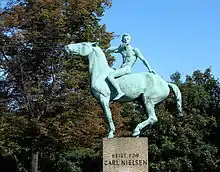 The Carl Nielsen Monument, located at the corner of Grønningen and Store Kongensgade in central Copenhagen, Denmark, is a monument to Danish composer Carl Nielsen created by his wife Anne Marie Carl-Nielsen. It depicts a young man playing pan-pipes on a wingless Pegasus and is also known as The Genius of Music (Danish: Musikkens Genius). The original plaster model is owned by the Carl Nielsen Museum in Odense.